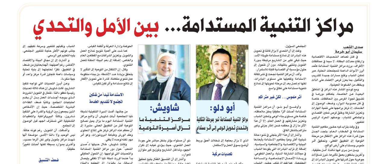 وأوضح أبو دلو أن مراكز التنمية المستدامة أحدثت أثرًا حقيقيًا يمكن ملاحظته، خاصة على مستوى بناء الوعي وتمكين الشباب وتعزيز مشاركتهم في العمل العام، إلا أن هذا الأثر ما زال في معظمه ضمن إطار جزئي وغير متراكم بالشكل الكافي.