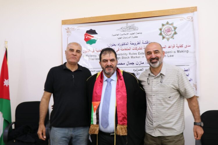 صدى الشعب – الدكتور معاوية الربابعه و هيثم بيك المغربي يباركون لصديق العمر نائب سمو رئيس الإتحاد الأردني للملاكمة المحامي الدكتور مازن جمال القاضي مناقشة رسالته في جامعة العلوم الإسلامية وإجازتها في القانون الخاص