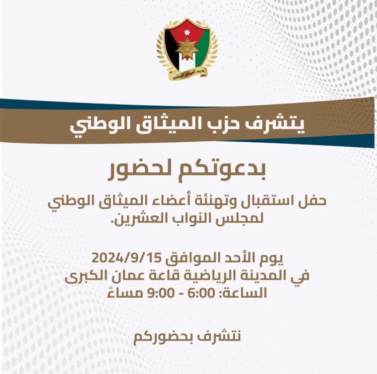 صدى الشعب – يقيم حزب الميثاق الوطني حفلاً لإستقبال وتهنئة اعضاء الحزب اللذين فازوا بالانتخابات النيابية لمجلس النواب العشرين