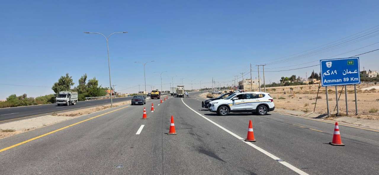 تم إغلاق المسربين الأيمن من الطريق والعامل فقط مسرب واحد المسرب الأيسر.