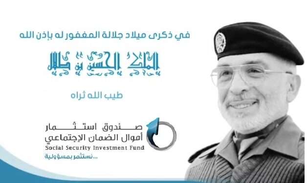 صدى الشعب – يرفع رئيس وأعضاء مجلس استثمار أموال الضمان الاجتماعي، ورئيس وموظفو صندوق الاستثمار، أصدق مشاعر الوفاء والانتماء إلى مقام حضرة صاحب الجلالة الهاشمية الملك عبدالله الثاني ابن الحسين، وصاحب السمو الملكي ولي العهد الأمير الحسين بن عبدالله الثاني حفظهما الله، وذلك بمناسبة الذكرى الخالدة لميلاد جلالة المغفور له الملك الحسين بن طلال طيب الله ثراه.