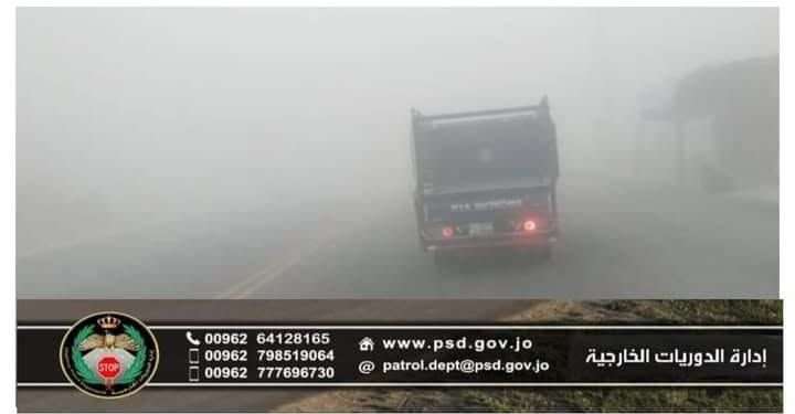 يرجى من الأخوة السائقين توخي الحيطة والحذر نتيجة تدني مدى الرؤية الأفقية بسبب تشكل الضباب في بعض المناطق.