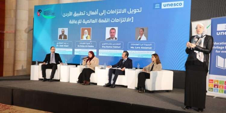 وأشار إلى أن الأردن يشكل نموذجاً مميزاً في تحويل التزامات القمة العالمية للإعاقة إلى واقع عملي، حيث تركز رؤيته الوطنية على تهيئة التعليم وتمكين كل طفل من ذوي الإعاقة من التعلم، وإزالة الحواجز التي تمنع دمجهم في المجتمع، وضمان مشاركتهم في صنع القرار والخدمات العامة، مضيفا “لقد حققنا إنجازات كبيرة مع وزارة التربية والتعليم والمجلس الأعلى لحقوق الأشخاص ذوي الإعاقة في مجال التعليم، ونسعى لدعم السياسات التي تزيل العوائق، ونعمل على أن يكون الأردن منارة للتعليم الدامج” .