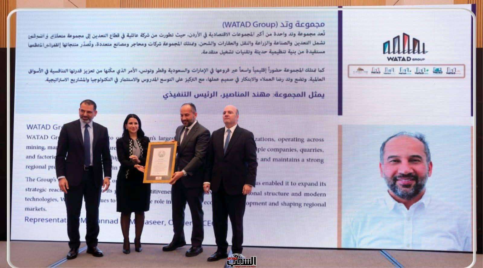 وشمل التكريم مجموعة وتد الاستثمارية، حيث تسلّم الجائزة نيابةً عنها الرئيس التنفيذي للمجموعة، السيد مهند المناصير، تقديرًا لالتزام المجموعة بمعايير القيادة الأخلاقية وترسيخ مبادئ المسؤولية المؤسسية في مختلف مشاريعها واستثماراتها.