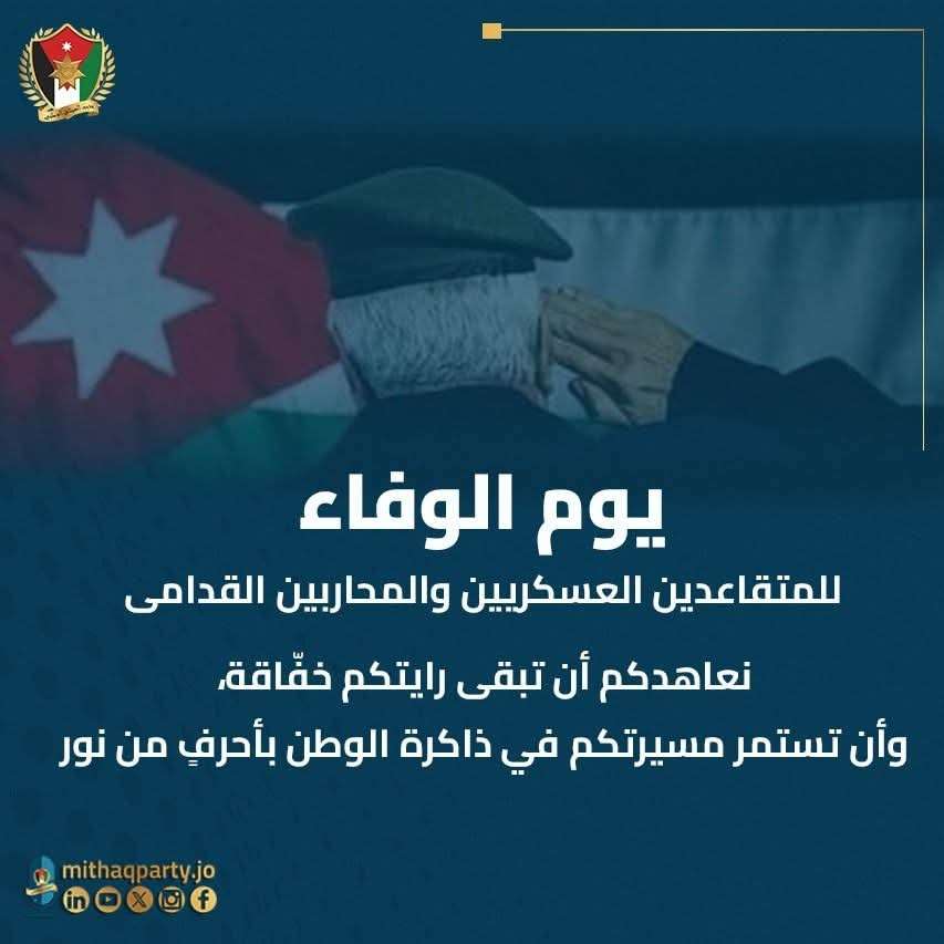 و إذ تعبّر عن المواجدة و الميثاق فخرها برفاق السلاح الذين وضعوا أرواحهم رخيصة وخدموا في السلك العسكري وقاتلوا في معارك الجيش العربي دفاعاً عن الوطن والأمة، وما بدلوا تبديلاً.