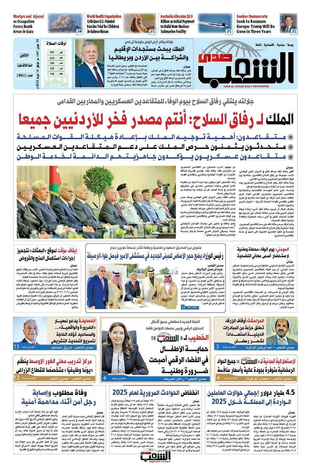 عــدد الإثنيـــن رقم 4061 ، الموافق 16-2-2026