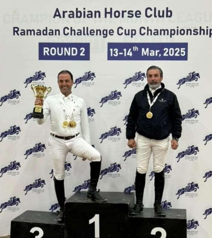 صدى الشعب – تمكن الفارس السوري رامي شاهين من المحافظة على صدارة فئة الكبار في ختام الجولة الثانية من بطولة كأس التحدي الرمضانية السنوية الثالثة والثلاثون لنادي الجواد العربي للقفز عن الحواجز لعام 2025 والتي تقام خلال يومي الخميس والجمعة من كل أسبوع خلال شهر رمضان المبارك على ميدان صالة هاني JR للأبطال (الصالة المغلقة)،عضو مجلس ادارة الاتحاد الملكي للفروسية آدم العساف ،ومدير عام النادي صالح فاخوري، وحضور جماهيري.