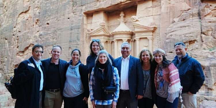صدى الشعب – التقى رئيس مجلس المفوضين الدكتور فارس البريزات بحضور مفوض ادارة شؤون المحمية الاثرية والسياحة المهندس يزن المحادين ومدير مركز زوار البترا والمتحف إبراهيم الفرجات، والدليل السياحي مأمون النوافلة، اليوم الاثنين في البترا، وفد من الكونغرس الأمريكي ممثلاً بعضو مجلس الشيوخ جوني إرنست، الممثلة لولاية أيوا، وعضو مجلس النواب عن ولاية فلوريدا ديبي واسرمان شولتز من الحزب الديمقراطي وعضو لجنة المخصصات وعدد من اللجان الأخرى.