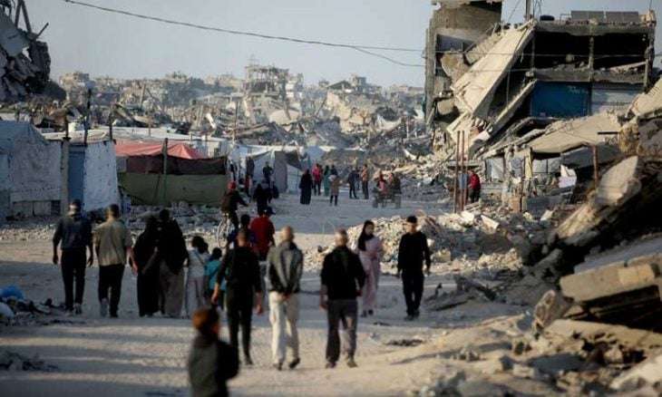 هذه الخيام تتوسط أكواما هائلة من ركام المنازل والبنى التحتية المدمرة، التي تخفي تحت أنقاضها العشرات من الجثامين الذين قتلتهم إسرائيل خلال الإبادة، وعجز الفلسطينيون عن انتشالها بسبب نقص المعدات والآلات الثقيلة.