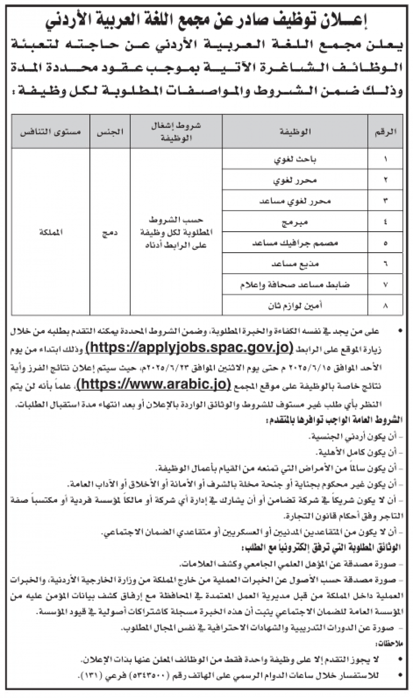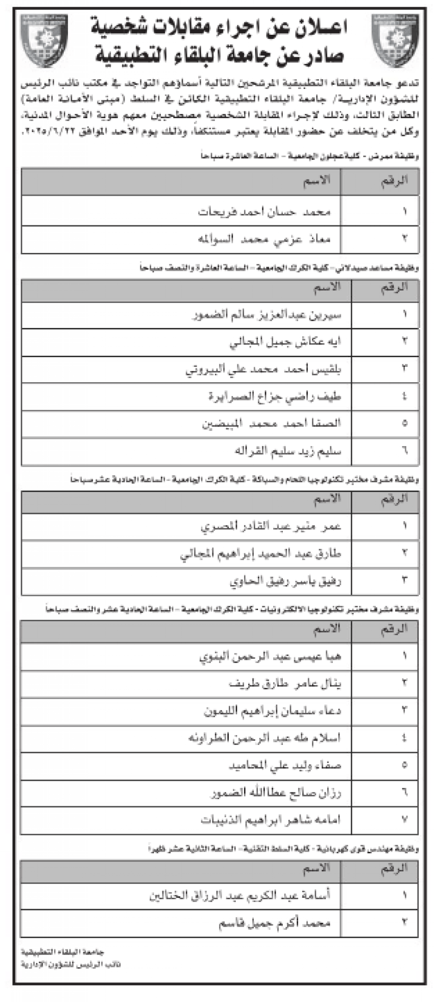 صدى الشعب - أعلنت عدد من المؤسسات الحكومية، اليوم الأحد، عن شواغر وظيفية، فيما دعت مؤسسات أخرى عدداً من المرشحين لإجراء المقابلات الشخصية، وتالياً التفاصيل: