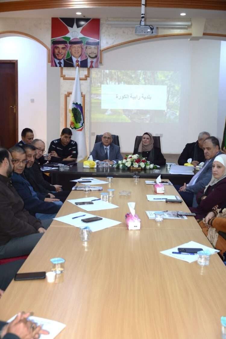 استضافت بلدية رابية الكورة اجتماع المجلس التنفيذي للواء في قاعة الاجتماعات بالبلدية، تحت رعاية متصرف لواء الكورة بلال الرفايعة، وبحضور رؤساء لجان بلدية رابية الكورة، ومدراء الدوائر الحكومية في اللواء، ممثلين عن قطاعات الصحة والتربية والتعليم والأوقاف والمياه والكهرباء، وعدد من الجهات الرسمية ذات العلاقة