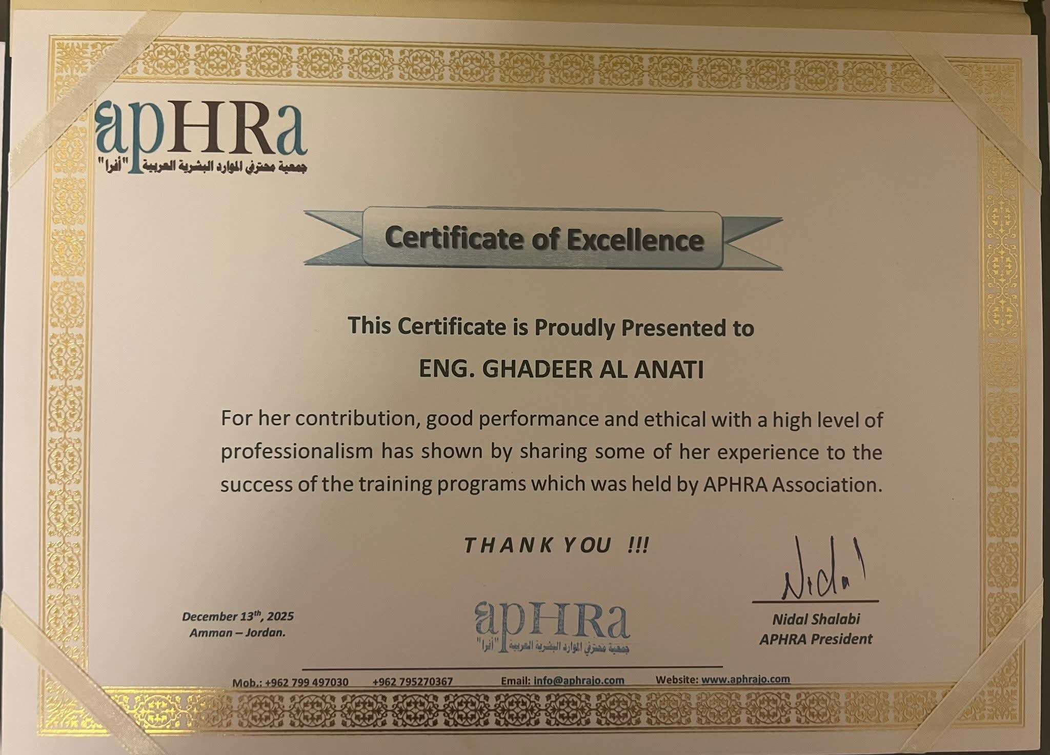 لاحظى بتكريم محبتهم لي وشهادة تقدير من دولة الدكتور عبد الرؤوف الروابدة..