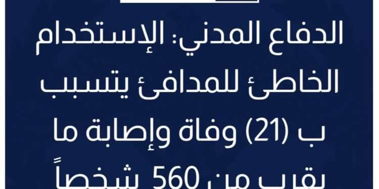 صدى الشعب – أعادت مديرية الدفاع المدني اليوم تحذيراتها من خطور الاستخدام الخاطئ للمدافئ، والتي تزايدت بفعل انخفاض درجات الحرارة والإقبال الأكبر لاستعمال المدافئ لأوقات طويلة والتي قد يصاحبها إهمال ينجم عنه حوادث قاتلة.