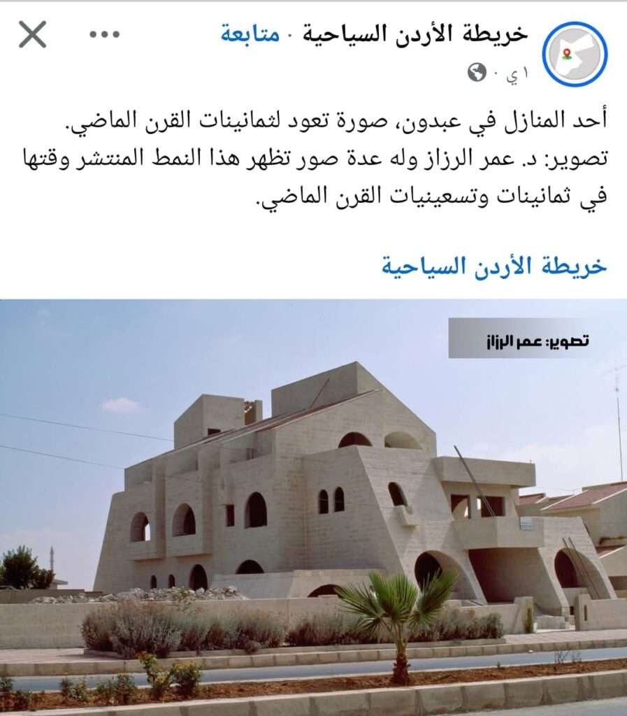 و تشير الصورة التي تعود إلى منزل في منطقة عبدون و التقطت قبل مايقارب الأربعين عاماً، ربما في العام 86 أو 87، و تأكيد أن من التقطها هو الرزاز و تظهر نمط معماري أنتشر آنذاك بتصميم المهندس وضاح العابدي عام 1986، فهل فعلاً التقطها الرزاز؟