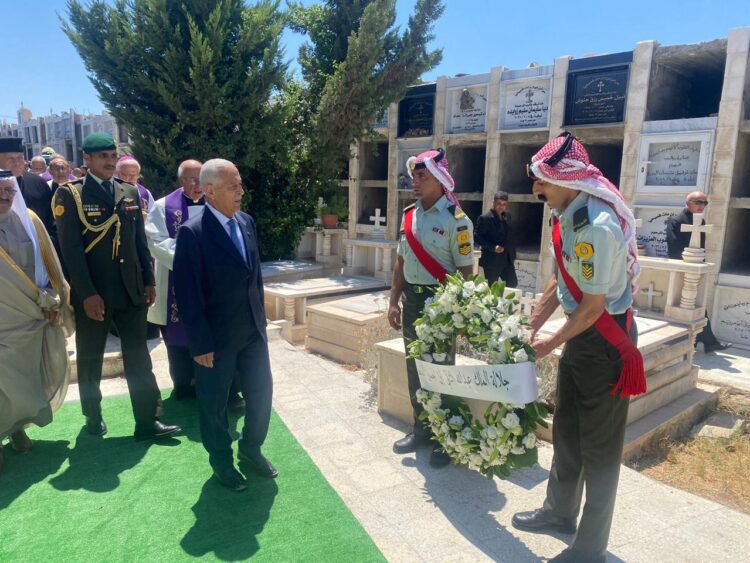 صدى الشعب – مندوبا عن جلالة الملك عبدالله الثاني، وسمو الأمير الحسين بن عبدالله الثاني، ولي العهد، شارك رئيس الديوان الملكي الهاشمي يوسف حسن العيسوي، اليوم الجمعة، في تشييع جثمان صالح المعشر، نجل نائب رئيس الوزراء الأسبق رجائي المعشر. ونقل العيسوي، خلال تشييع جثمان المرحوم، تعازي ومواساة جلالة الملك وسمو ولي العهد إلى ذويه وعموم آل المعشر، سائلا الله العلي القدير أن يتغمده بواسع رحمته ويسكنه فسيح جنانه. وحضر تشييع الجثمان مستشار جلالة الملك لشؤون العشائر كنيعان البلوي.