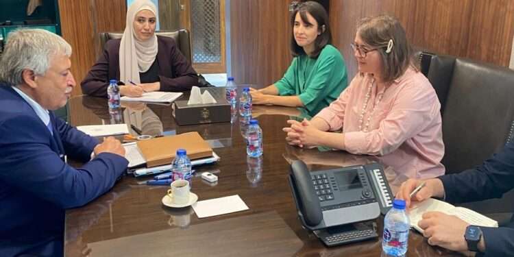 التقى وزير النقل الدكتور نضال القطامين، القائم بأعمال السفارة البريطانية في عمان هيزل ماوبري، حيث بحثا العلاقات الثنائية بين الأردن والمملكة المتحدة في مجال النقل.