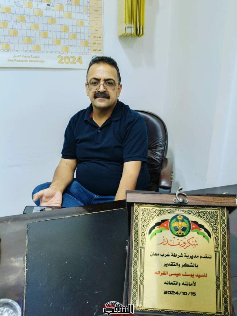 حيث انه وجد حقيبة بداخلها مبلغ مالي بالإضافة لجواز سفر واوراق رسميه قام بتسليمها لمركز الامن وهذا التصرف ليس بغريب على ابو يمان يوسف القراله فالجميع يؤمن بخلقه وأمانته بارك الله بكل من يحمل ثقل المسؤولية بكل مفرداتها.