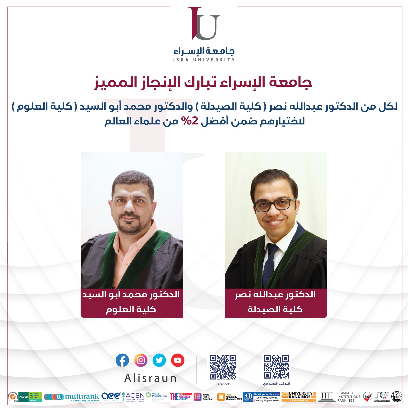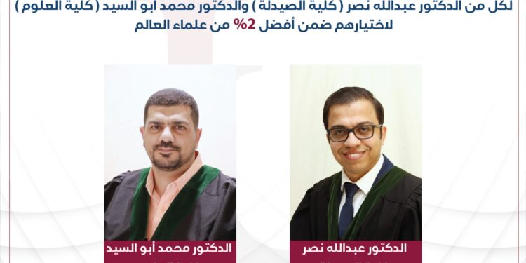 صدى الشعب -هنأ معالي الأستاذ الدكتور محمد حامد رئيس الجامعة الباحثين كلاً من الدكتور عبدالله نصر من (كلية الصيدلة) والدكتور محمد أبو السيد من (كلية العلوم ) لتصنيفهم ضمن قائمة أفضل 2% من الباحثين في التقرير السنوي الصادر عن جامعة ستانفورد للعام 2024، مثمناً هذا الإنجاز و الابداع و التميز من الممارسات التي تنتهجها الجامعة في دعم البحث العلمي الأصيل، و يعكس هذا الإنجاز مكانة الجامعة في مجال البحث العلمي، مؤكداً التزامها بتعزيز دور البحث الأكاديمي في المجتمعين المحلي والعالمي .