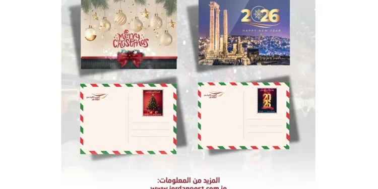 صدى الشعب -تطرح شركة البريد الأردني، بطاقتين بريديتين تذكاريتين بمناسبتي عيد الميلاد المجيد ورأس السنة الميلادية 2026، اعتبارا من صباح غد الأربعاء وبكميات محدودة.