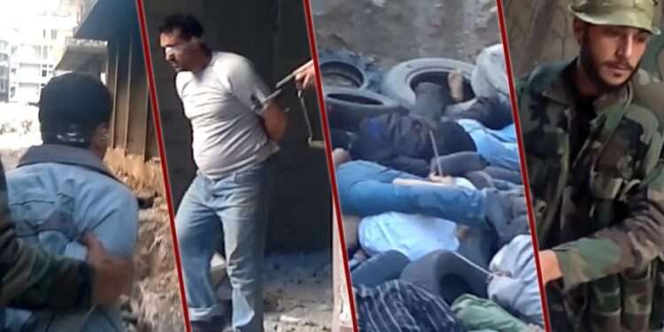 وأظهر مقطع الفيديو جندياً من “الفرع 227” وهو يقتاد المدنيين ثم يطلق النار عليهم قبل أن يلقيهم في حفرة أُعدت خصيصاً لدفن جثثهم وإحراقها.