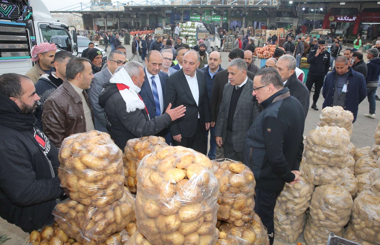 كما اطلع على جاهزية السوق لاستقبال الشهر الفضيل واستعداداته لضمان ديمومة التزويد بالمنتجات الزراعية، و على كمية المنتجات الواردة الى السوق بمعدل 3500 طن يوميا من الخضار والفواكه.