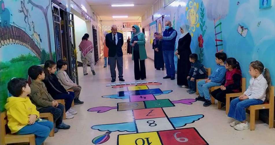 وتم خلال الزيارة افتتاح الجداريات التعليمية في صفوف رياض الاطفال ضمن مشروع بيئتي الاجمل.