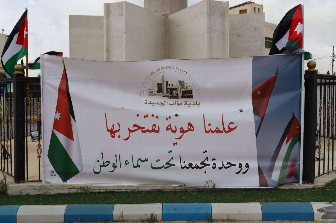 ترفع بلدية مؤاب الجديدة هاماتها فخرًا واعتزازًا بهذا الرمز الخالد، الذي خطّت ألوانه تاريخ وطنٍ لا يعرف الانكسار، وعبّرت زواياه عن وحدة شعب، وكرامة أمة، وعهدٌ متين مع المجد والحرية.