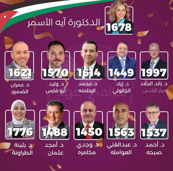 وفازت الاسمر بموقع نقيب أطباء الأسنان، كأول سيدة تقود النقابة بمجموع 1678 صوتاً متفوقة على منافسها الدكتور محسن الروسان، مرشح قائمة “توافق” والذي حصد 985 صوتًا.