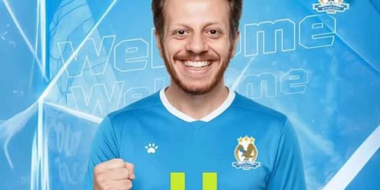 نشر الحساب الرسمي للنادي على منصات التواصل الإجتماعي: “من قلب الشام إلى عرين النسور، نسر جديد يُحلّق معنا، هنا حيث يصنع المجد، حيث القميص الأزرق لا يُرتدى، بل يُقاتَل من أجله، أهلاً بك في البيت الأزرق”.