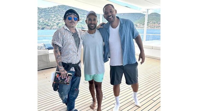 نشر أحمد سعد صورتين مع ويل سميث وجوني ديب من على يخت في مدينة تبدو وكأنها تسوكان الإيطالية، وكتب “إحساس جميل إنك تجمع أصحابك . شكرًا أصدقائي على الزيارة الجميلة “.