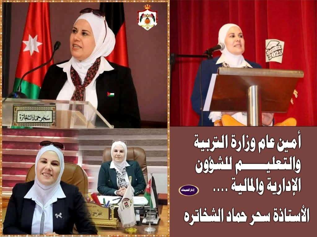 عطوفة الأمين العام لوزارة التربية والتعليم للشؤون الإدارية والمالية سحر حماد الشخاترة ، شخصية استثنائية تجمع بين الرؤية الحكيمة ، والقدرة على الابتكار. بفضل جهودها المخلصة وإبداعها المتجدد، حيث إستطاعت عطوفتها أن تسهم في تطوير سياسات التعليم والإرتقاء بمستواه بما يواكب طموحات الوطن ورسالة التربية والتعليم … إنها مثال يُحتذى في القيادة والإخلاص والعطاء.