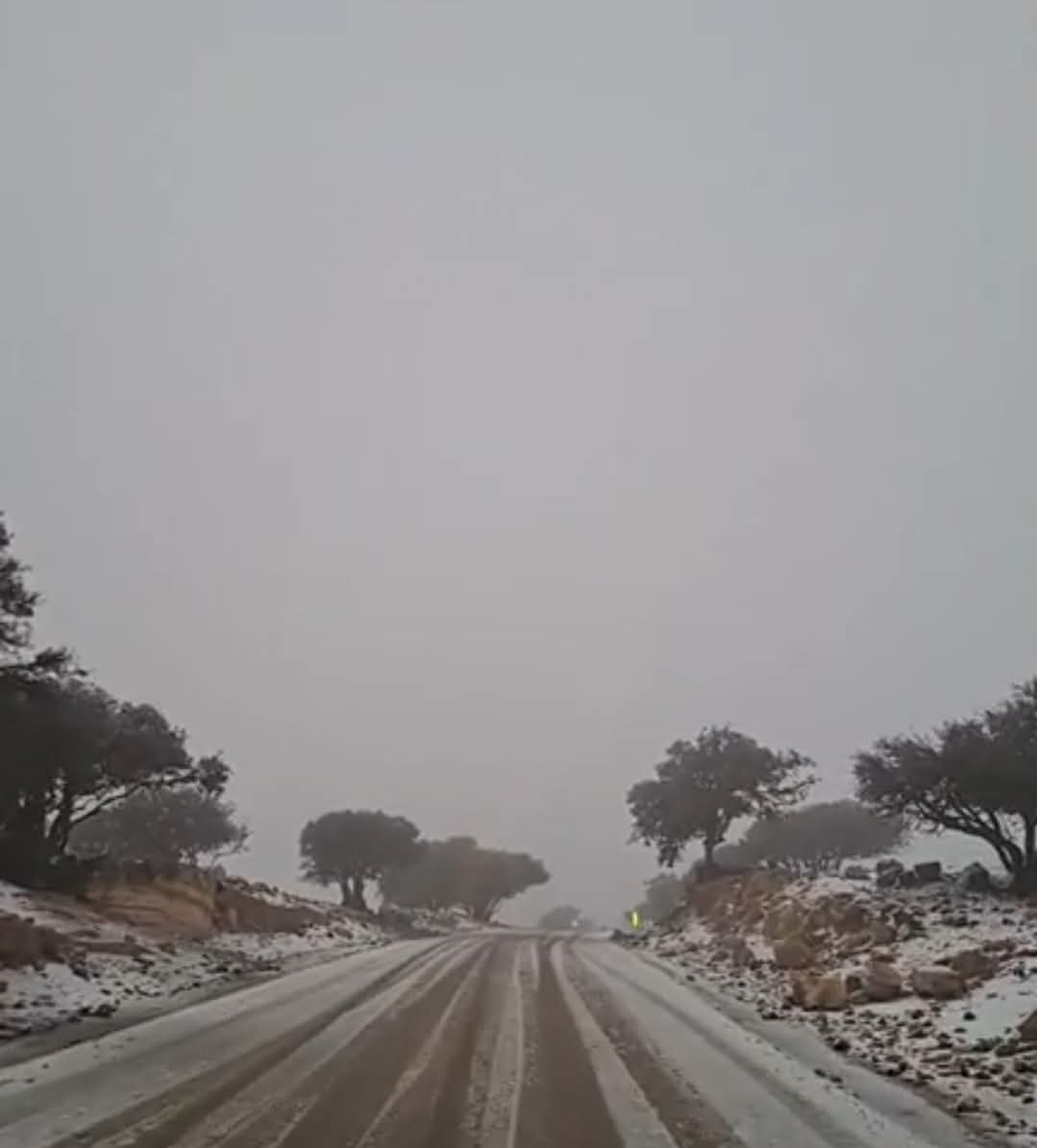 كما شهدت المرتفعات العالية في محافظة الطفيلة، تساقط زخات من الثلوج، وخاصة في مرتفعات الرشادية.