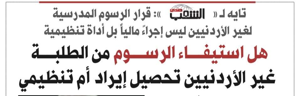 فيما قرار مجلس الوزراء باستيفاء رسوم دراسية من شريحة محددة من الطلبة غير الأردنيين الملتحقين بالمدارس الحكومية في إطار مقاربة تنظيمية تهدف إلى معالجة الضغوط المتزايدة على النظام التعليمي، في ظل ارتفاع كلف التشغيل وتنامي أعداد الطلبة، مقابل محدودية الموارد المالية المتاحة، بما يعزز استدامة التعليم الحكومي دون الإخلال بمبدأ مجانية التعليم المكفول دستورياً للأردنيين.