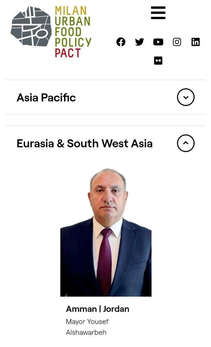 انضمت مدينة عمّان رسمياً الى اللجنة التوجيهية الخامسة لبرنامج الشراكة ضمن مبادرة ميثاق سياسات الغذاء الحضري في ميلانو