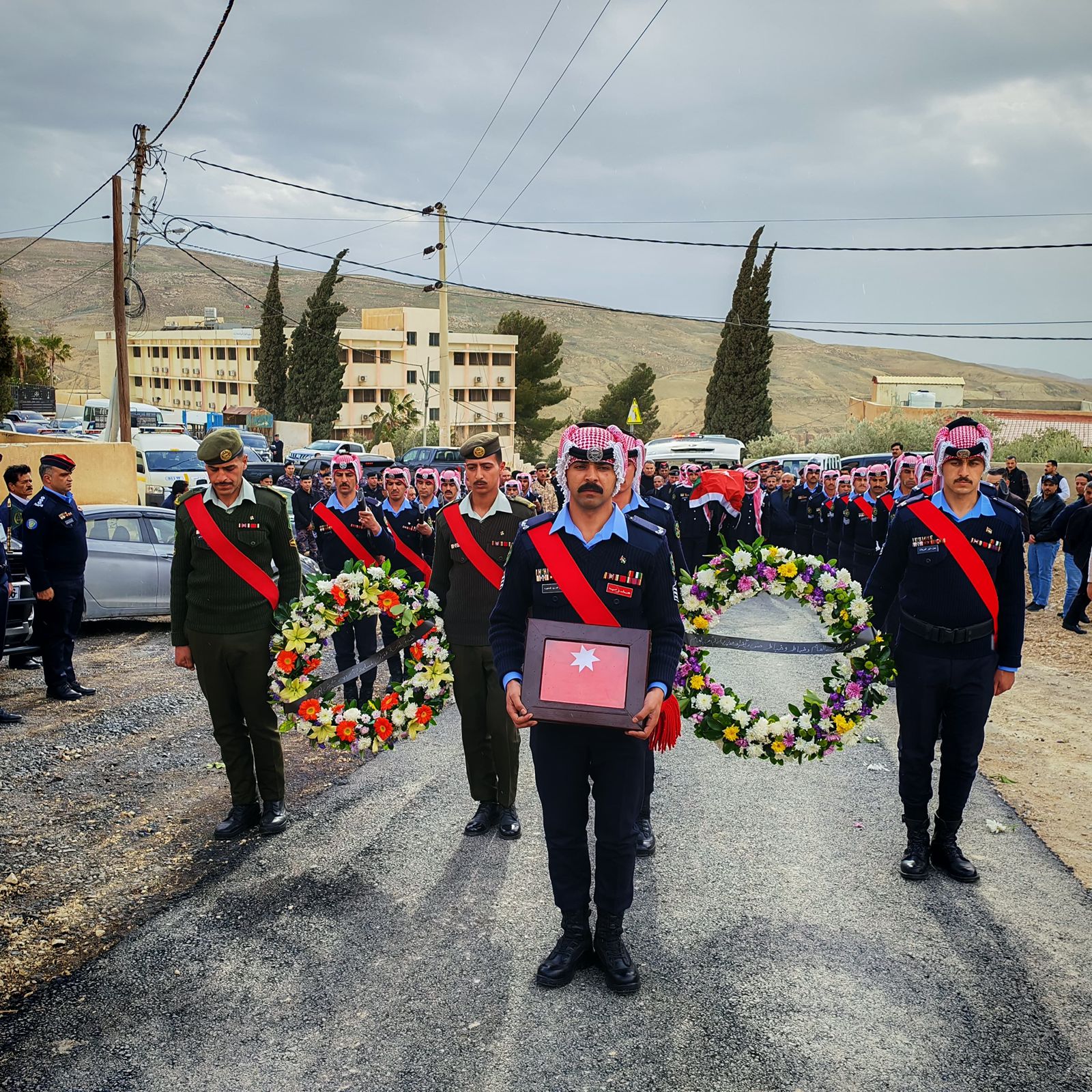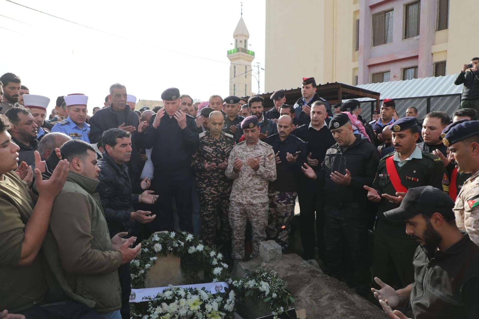 وجرت لشهداء الواجب مراسم عسكرية، وحملوا على أكتاف رفاقهم من منتسبي جهاز الأمن العام ملفوفين بالعلم الأردني ، ووُروا الثرى بعد الصلاة عليهم في مقبرة بلدة العراق في الكرك ومقبرة الجيزة ومقبرة دابوق في العاصمة عمان.