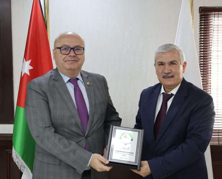 صدى الشعب – استقبل الأمينُ العام للمجلس الأعلى للعلوم والتكنولوجيا الأستاذ الدكتور مشهور الرفاعي سفير جمهورية بلغاريا في عمان ميتين كازاك لبحث آفاق التعاون العلمي والتقني وتعزيز الشراكات الثنائية بين البلدين، ومناقشة مشروع زراعة اللافندر في منطقة تل حسان الذي ينفذه المركز الوطني للبحث والتطوير التابع للمجلس بحضور مديره الأستاذ الدكتور محمد وديان، ومدير مجموعة الريحان المهندس نبيل البكري.