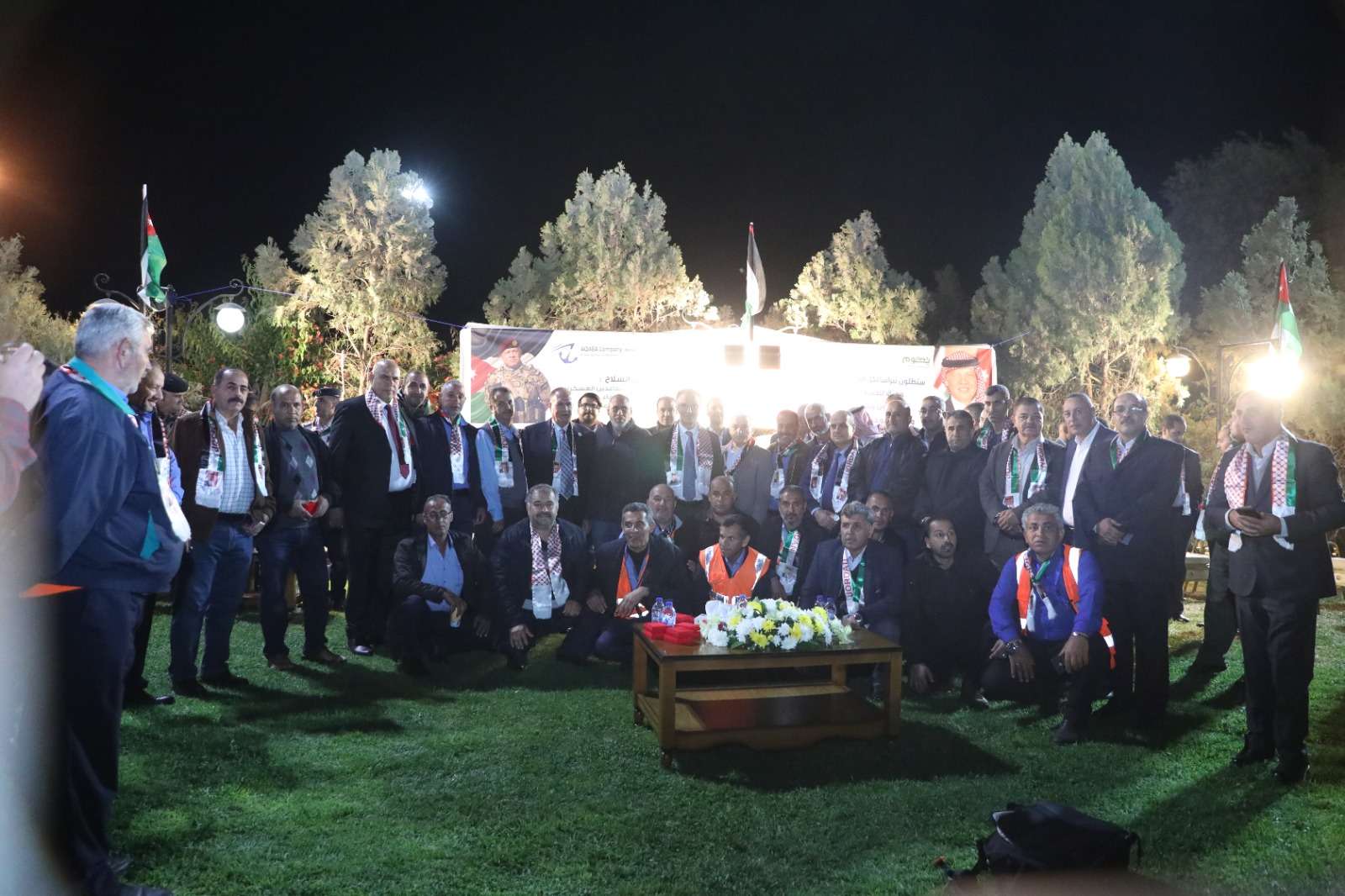 وتخلل الاحتفال حفل عشاء اقامته شركة العقبة لادارة وتشغيل الموانىء في نادي الامير راشد التابع للشرك تكريما للمتقاعدين العسكريين حيث زينت الاعلام وصور جلالة الملك موقع الاحتفال .