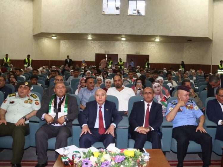 كما ألقى رئيس اتحاد الطلبة الطالب عمر الصرايرة كلمة باسم طلبة الجامعة، أكد فيها اعتزاز الشباب الجامعي بالقيادة الهاشمية، واعترافهم بجميل من قدموا أرواحهم في سبيل أمن الوطن واستقراره، مجددين الولاء والانتماء لتراب الأردن ورايته الخفاقة.