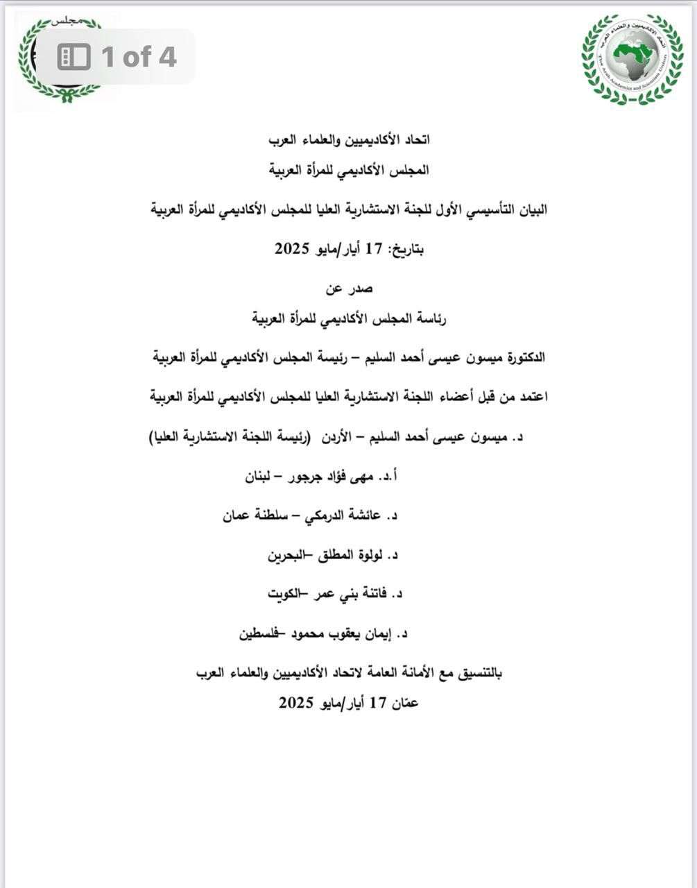 ويعكس البيان التأسيسي الرؤية الفكرية التي ينطلق منها المجلس، ويحدد ملامح الدور الاستشاري للجنة في تقديم الرأي العلمي والتوجيهي، وتعزيز التكامل المؤسسي، ودعم المسارات المعرفية التي تخدم قضايا المرأة الأكاديمية في الوطن العربي.