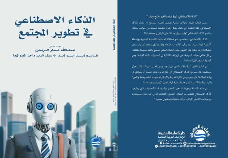 صدى الشعب – صدر حديثا كتاب “الذكاء الاصطناعي في تطوير المجتمع” عن دار كفاءة المعرفة للنشر والتوزيع بعمان، للباحثين الدكتور عطا الله عسكر الرمحين، وقاسم أبو زيد والزميل سيف الدين الصوالحة.