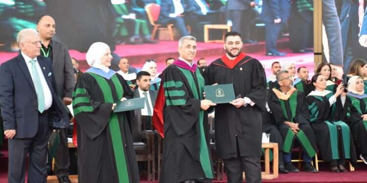 وخلال الاحتفال، الذي احتضنه ستاد كلية التربية البدنية وعلوم الرياضة، وزع عبيدات الشهادات على الطلبة خريجي برامج الماجستير من مختلف كليات الجامعة إضافة إلى خريجي برامج الدبلوم العالي وبرنامج الدبلوم العالي لإعداد المعلمين.