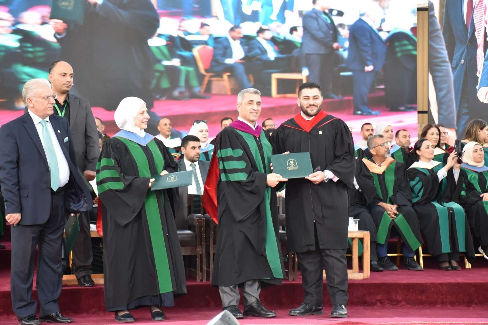 وخلال الاحتفال، الذي احتضنه ستاد كلية التربية البدنية وعلوم الرياضة، وزع عبيدات الشهادات على الطلبة خريجي برامج الماجستير من مختلف كليات الجامعة إضافة إلى خريجي برامج الدبلوم العالي وبرنامج الدبلوم العالي لإعداد المعلمين.