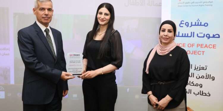 صدى الشعب – تحت رعاية الامين العام لوزارة الاتصال الحكومي مندوباً عنه الاستاذ طه الخصاونه مدير الإعلام الرقمي وإنتاج المحتوى، عقد مركز وعي للتدريب في حقوق الانسان الحفل الختامي لمشروع ” صوت السلام” بدعم من مركز الملك عبد الله بن عبد العزيز العالمي للحوار بين أتباع الأديان والثقافات (كايسيد)،