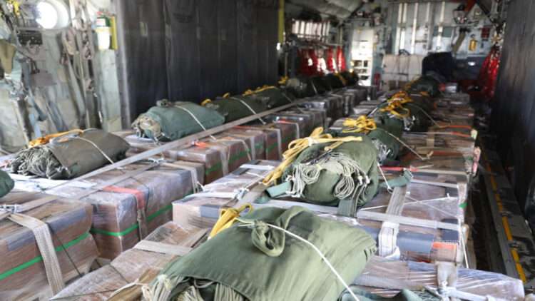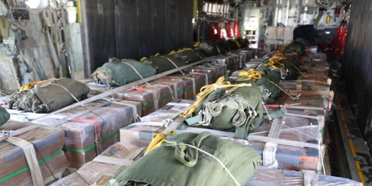 صدى الشعب – نفذت القوات المسلحة الأردنية، الثلاثاء، عملية إنزال جوي إلى قطاع غزة، شاركت في العملية طائرات سلاح الجو الملكي الأردني، وطائرات من كل من دولة الإمارات العربية المتحدة وألمانيا، فرنسا، إيطاليا، هولندا، سنغافورا بالإضافة إلى أندونسيا، حيث تم إسقاط قرابة 85 طناً من المواد الغذائية والإغاثية داخل القطاع.