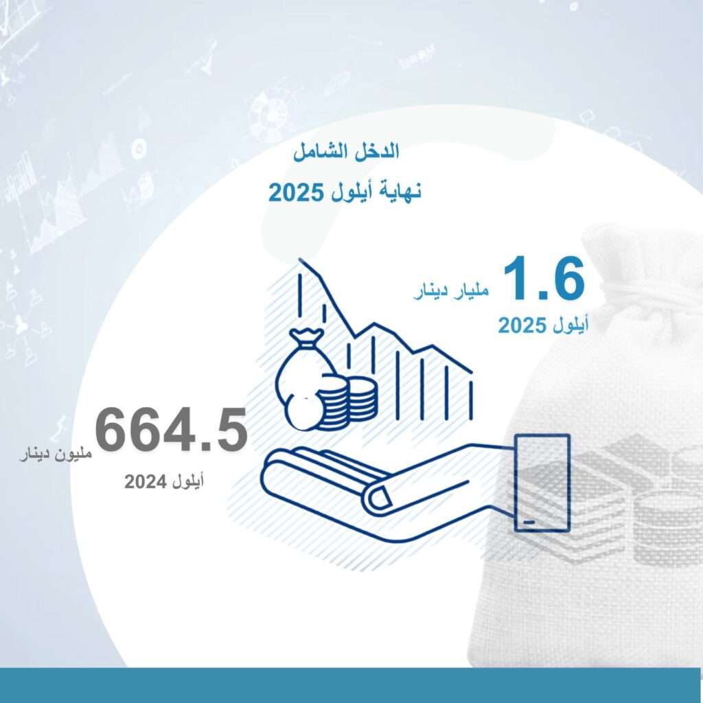 This growth was driven by an increase in total income, which advanced to JD 1.6 billion compared with JD 664.5 million for the same period last year — a 133.5 percent increase — along with the JD 164 million surplus transferred from the Social Security Corporation.