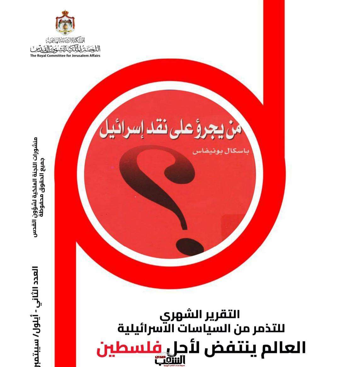 ويتضمّن العدد الثاني من التقرير قراءة خاصة في كتاب “من يجرؤ على نقد إسرائيل” للمفكر الفرنسي باسكال بونيفاس، في سياق التأكيد على أن نقد الاحتلال وسياساته الاستعمارية لم يعد فعلًا نادرًا أو مرتبطًا بالجرأة الفردية، بل بات واجبًا أخلاقيًا عالميًا يتشكل يومًا بعد يوم، ويوثق التقرير اتساع نطاق الرفض الدولي لخطاب الدعاية الإسرائيلية ومحاولات ترويج ما بات يُعرف بـ “أسطورة إسرائيل الضحية”، لا سيما في ظل تواصل العدوان على غزة وما نتج عنه من قتل وتشريد وإبادة جماعية، إلى جانب اقتحامات المستوطنين المتكررة للمقدسات الإسلامية والمسيحية في القدس واعتداءاتهم على بلدات الضفة الغربية وممتلكات أهلها.