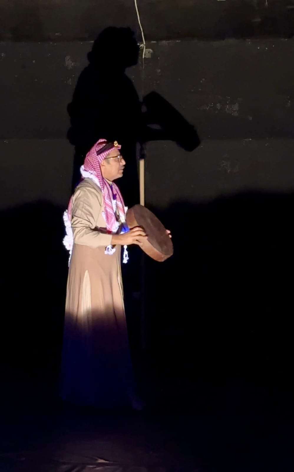 والعرض المسرحي، الذي حضره مندوبا عن وزير الثقافة أمين عام الوزارة الدكتور نضال الأحمد، ورئيس مجلس إدارة وكالة الأنباء الأردنية (بترا) الزميل نبيل غيشان، ورئيس الوزراء الأسبق الدكتور عمر الرزاز، والزميل الرواشدة وعدد من المهتمين، تناول التلاحم الأردني الفلسطيني، كما استحضر تضحيات وشهداء القوات المسلحة الأردنية- الجيش العربي وشهداء الأردن ومنهم كايد عبيدات على ثرى فلسطين، كما استحضر بطولات الجيش العربي في معركة الكرامة.
