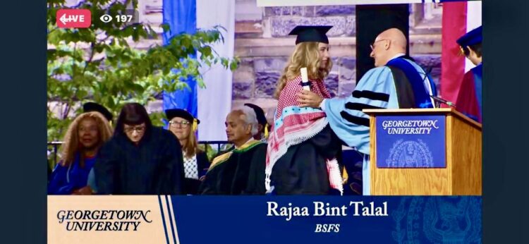 <h5>صدى الشعب - هنأت الاميرة غيداء طلال، ابنيها الأمير محمد بن طلال والأميرة رجاء بنت طلال، بمناسبة تخرجهما من جامعة جورج تاون الأمريكية.</h5> <h5>وقالت الأميرة في منشور لها عبر موقع التواصل الاجتماعي إكس " فرحتي وفخري لا حدود لهما بتخرّج ابنتي رجاء بنت طلال وابني محمد بن طلال من جامعة جورجتاون".</h5> <iframe src="https://www.facebook.com/plugins/post.php?href=https%3A%2F%2Fwww.facebook.com%2FPrincessGhidaTalal%2Fposts%2Fpfbid02R6hhS67zauAb4LmMKR3FSsQ5DjE1EtmRGTxaHLE8gkZB9WQqVujPPZjBoPRr9FY7l&show_text=true&width=500&is_preview=true" width="500" height="250" frameborder="0" allowfullscreen="allowfullscreen"></iframe>