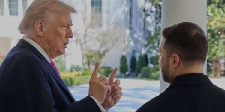 - صدى الشعب – في وقت ظهر الرئيس الأوكراني فولوديمير زيلينسكي يغادر البيت الأبيض منفرداً متجهماً دون داعٍ رسمي، عقب لقاء الرئيس الأمريكي دونالد ترامب، فإن مصادر كشفت عن اجتماع محموم شهد صراخاً وسباباً، بسبب ما يسمى «الحزام الحصين»، ولكن هذه المرة وقعت المواجهة خلف عدسات الكاميرات وليس علناً، كما حدث في اجتماع فبراير /شباط الشهير.
