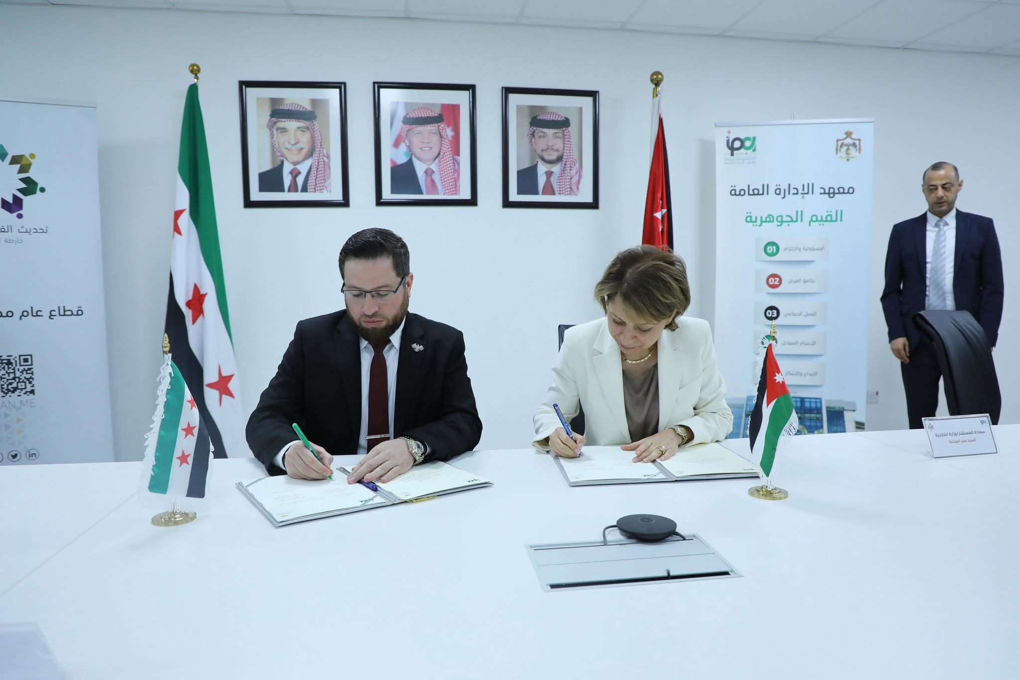 وتهدف المذكرة إلى تعزيز التعاون وتبادل الخبرات بين الجانبين في مجالات القيادة والإدارة العامة، وبناء القدرات الإدارية والفنية لموظفي القطاع العام السوري، بما يواكب أولويات وخطط التنمية الإدارية والتحول المؤسسي في سوريا.